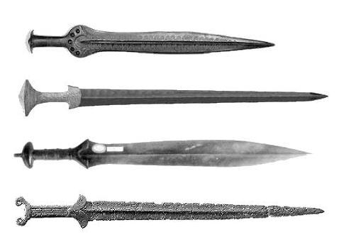 Die Bronzezeit beginnt im Orient/Kaukasus im 3. Jt. v. Chr.; eigentliche Schwerter findet man ab dem 2. Jt. v. Chr. (Hajdusamson (Ungarn) und Mykene um 1600), in Mitteleuropa ab ca. 1100. Eiserne Schwerter ab ca. 7. Jh. (Hallstatt).